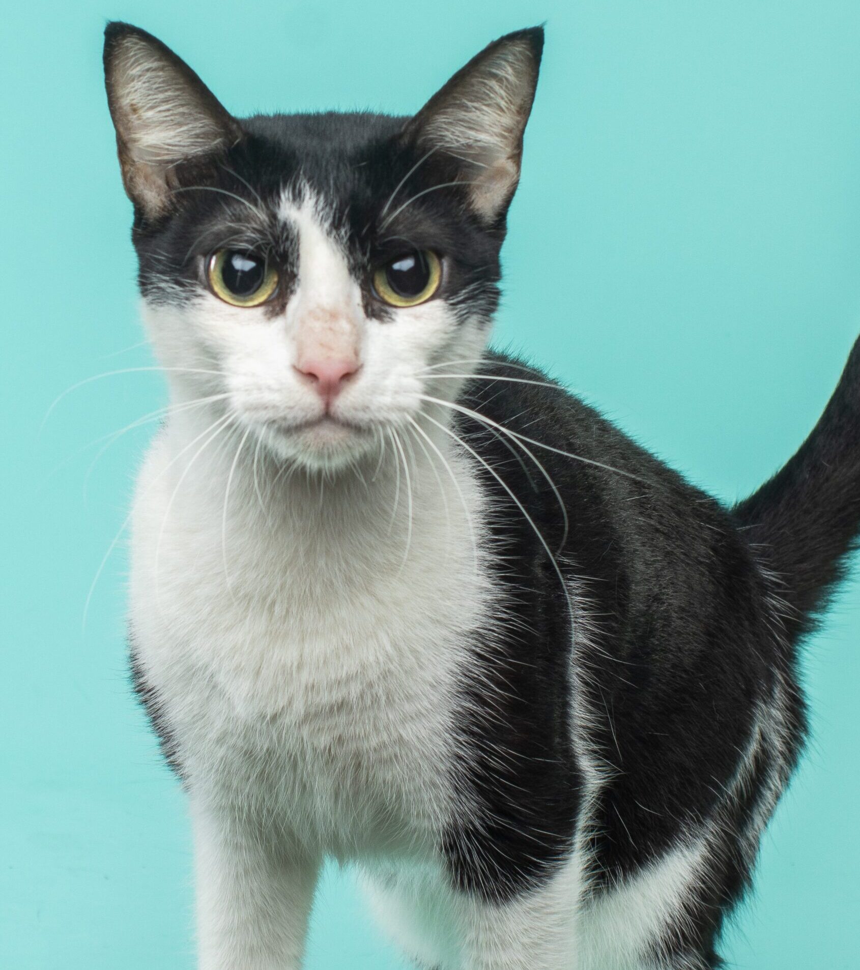 A small yet stunning tuxedo cat, Carla is one of the first ones to come at you as soon as you walk in with a wand toy in your hands. She’s not afraid to run around, express her excitment, roll on her back and use her limbs so long as she catches her target! Her delightful antics which can make anyone coo at how adorable she is and her affectionate side is sure to be a joy in any home.